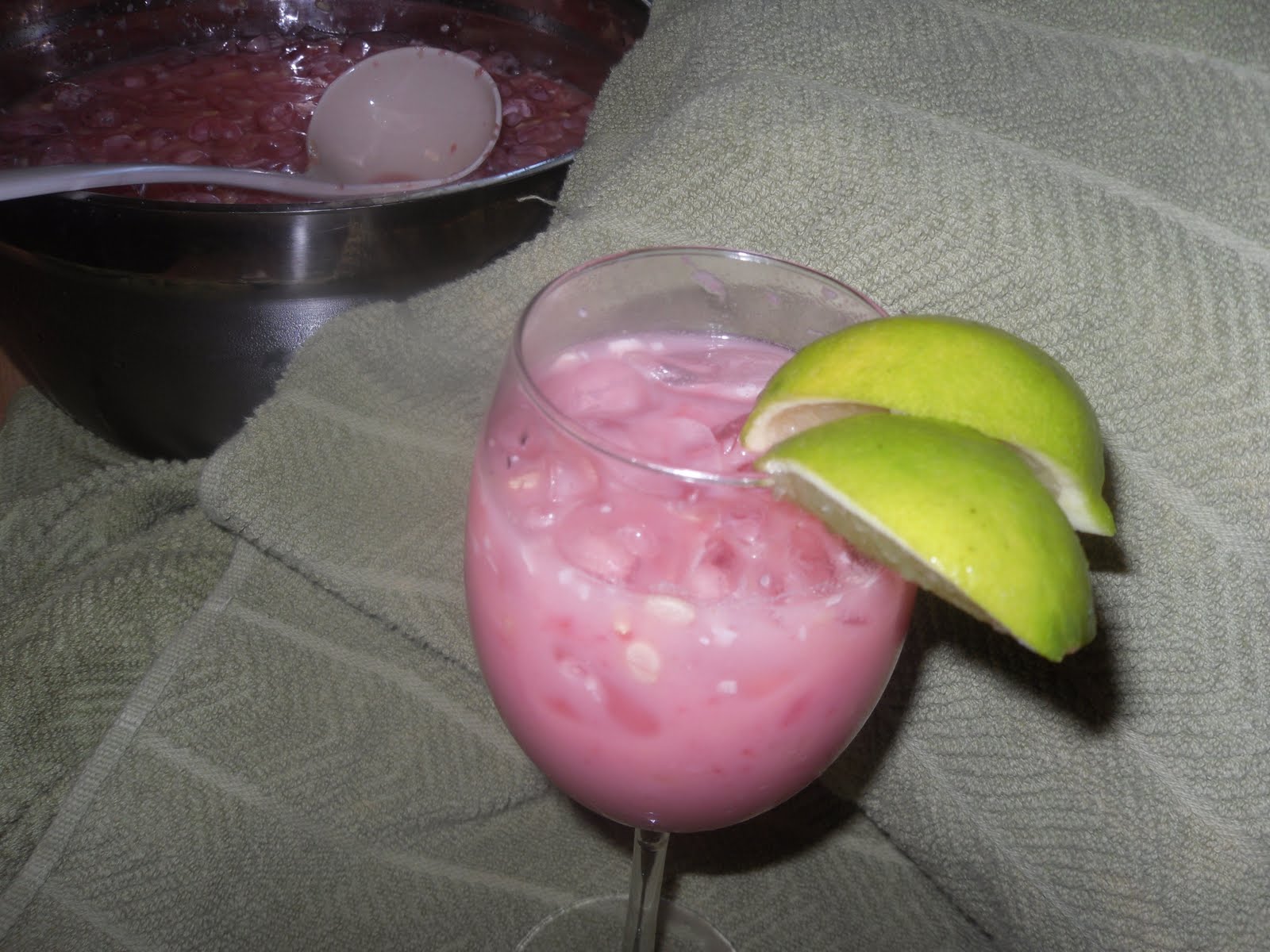 The most popular variation is a simple blend of coconut milk, watermelon and mango. Ice cubes might also be added to make a sort of smoothie.